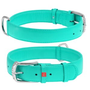 Collar made of soft, natural and high-quality leather. Stand the test of precipitation. With careful use will last a long time. The circumference of the neck - 46-60 cm, width - 35 mm.