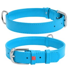 Collar made of soft, natural and high-quality leather. Stand the test of precipitation. With careful use will last a long time. The circumference of the neck - 30-39 cm, width - 20 mm.