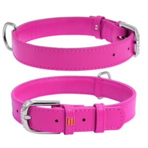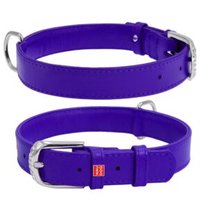 Collar made of soft, natural and high-quality leather. Stand the test of precipitation. With careful use will last a long time. The circumference of the neck - 38-49 cm, width - 25 mm.