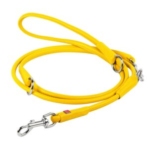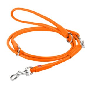 Made of genuine leather. Practical and versatile. Wearproof. It helps control pet. The length of the product - 122, 142, 183 cm. Diameter timber - 6 mm.