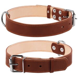 Collar durable, lightweight, unvarnished. Made from two layers of durable high-quality leather. When installed buckle leather cover, which prevents rubbing the neck of your pet. The circumference of the neck - 38-50 cm, width - 25 mm.