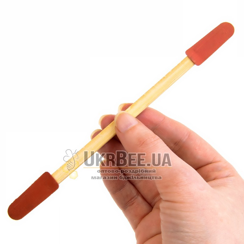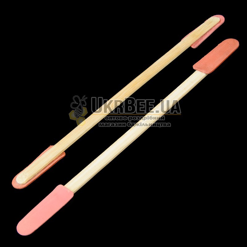 Special wooden spatula with two blades to capture the royal jelly. This trowel shows beekeepers unprecedented speed and practicality. Special rounded blade allows no residue pick up all of the cells of royal jelly. size width and height allows you to pick up milk in a single operation without the distraction of milk remains in the fallopian bowl. Collected spatula royal jelly immediately removed to a special container and start the next queen cells. Thus the collection of milk from one frame 50-100 queen experienced beekeeper spends less than two minutes.