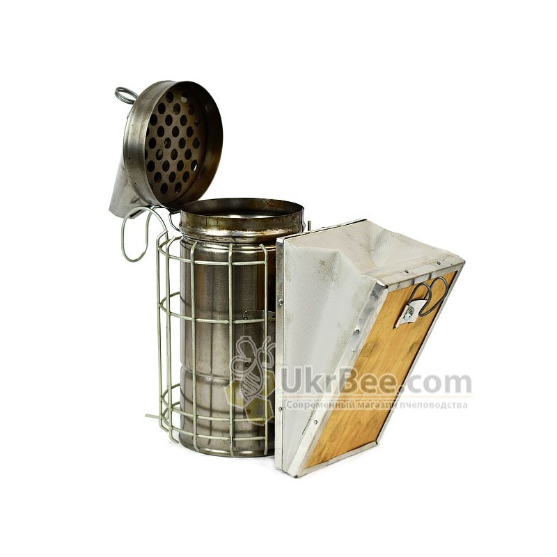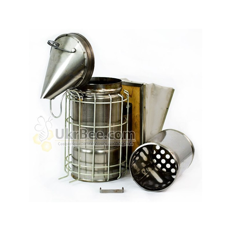chimney equipped with black steel cylindrical glass designed to accommodate materials fumigate. Its bottom contains circular holes that leak air from Micah, producing thick smoke. The same holes are contained in a conical lid. During the smoldering smoke rises to the lid and ashes falling through the holes in the bottom.