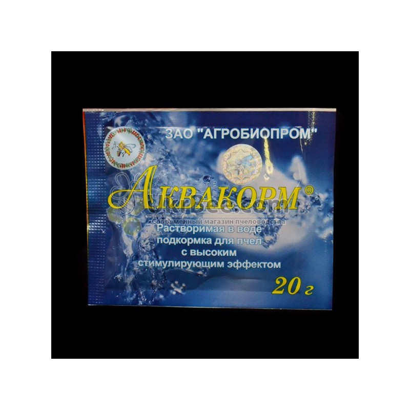 Aquafeed is used for watering bees in the spring and summer-autumn periods at the time of increasing the strength of families and preparing them for wintering. The food is added to the drinking bowl with water at the rate of 20 g per 10 liters of water.