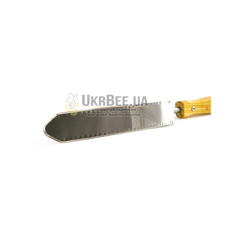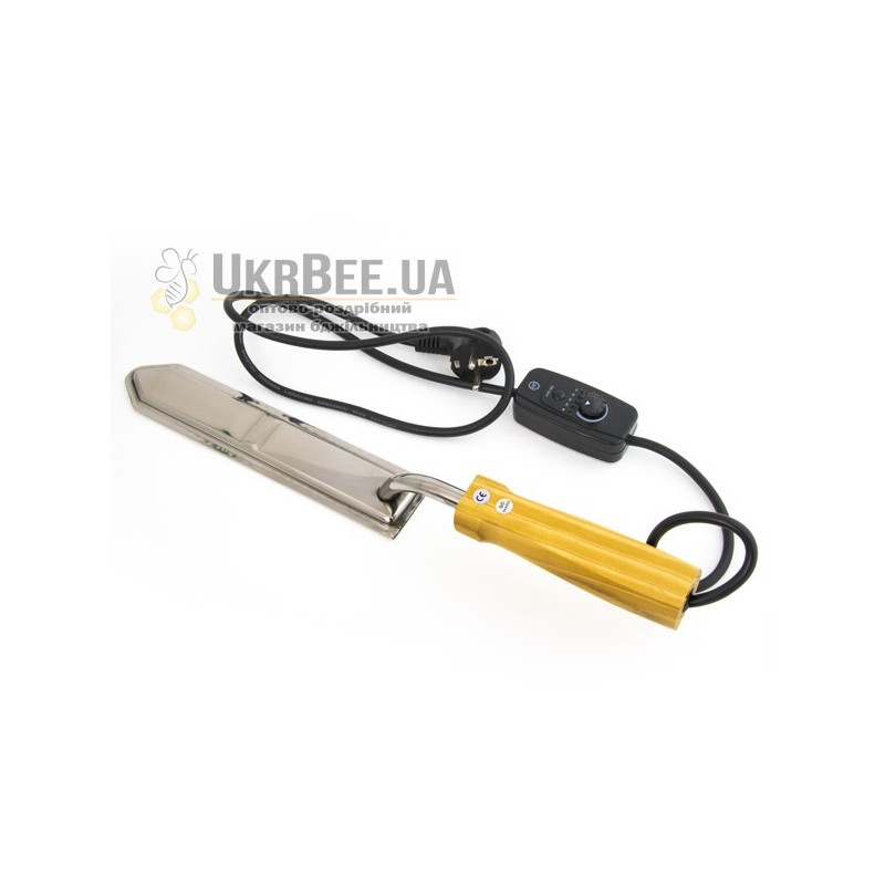 Designed for bee frames before the evacuation of honey. Easily allows zabrus cut from the frame, without any special effort. Using a knife with a heating element allows you to easily and efficiently perform cut wax framework. The blade of the knife is made of stainless steel. The handle of the knife is made of wood.