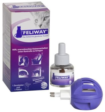 Felivay contains a synthetic analogue of the pheromone of the facial glands of cats (fraction RH). Feliway, an emitting synthesized pheromone, mimics the action of pheromones in the facial glands of cats, informing the animal of no cause for concern and creating a sense of peace and safety in him, restoring good health. and normalizes the behavior of cats.