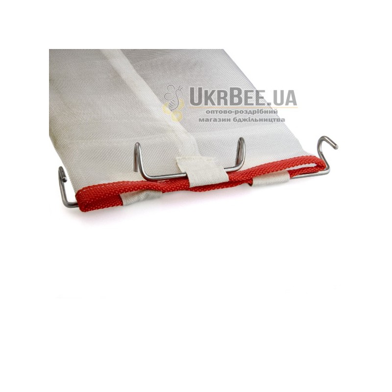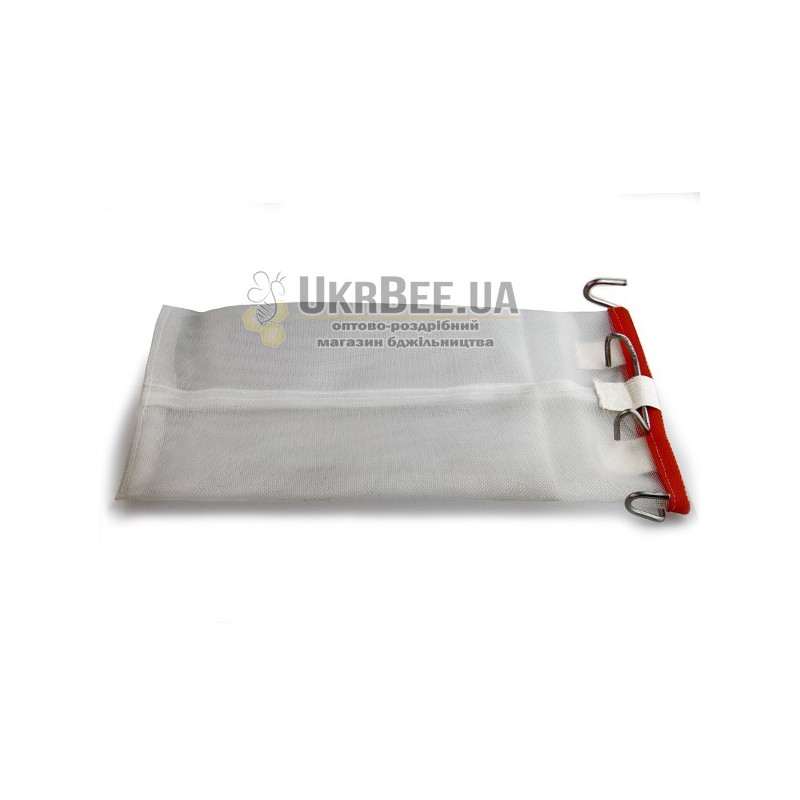 When pumping honey, for that would be placed in the frame medogonku of it cut off zabrus. In zabrusi still plenty of honey, which also eventually need to overcome. A small grid cells, because honey is filtered best. The dimensions of the bag allow to place it in a standard medogonku for the evacuation of honey from the honeycombs zabrusa and scraps. To mount the filter bag inside-cassette honey provides special metal hooks. The bag is easy to clean if necessary. You can use repeatedly.
