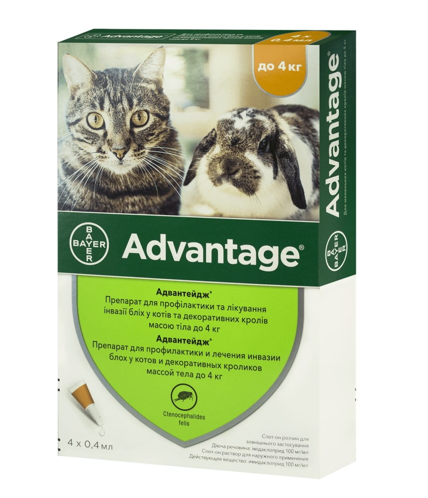 Advantage flea drops for cats up to 4 kg, 0.4 ml, 4 pipettes