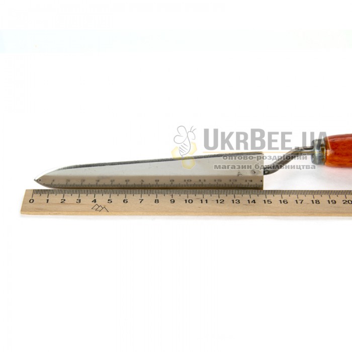 knife suitable for cutting sealed honey combs with frames made of stainless steel and has a flat double-sharpening blades. Blade length 15 cm. Knife wooden handle is comfortable rounded shape so than comfortable to hold in hand. Knife beekeeping “Trapeze” can be seen as a budget option for beginning beekeepers because it has a low price and good workmanship.