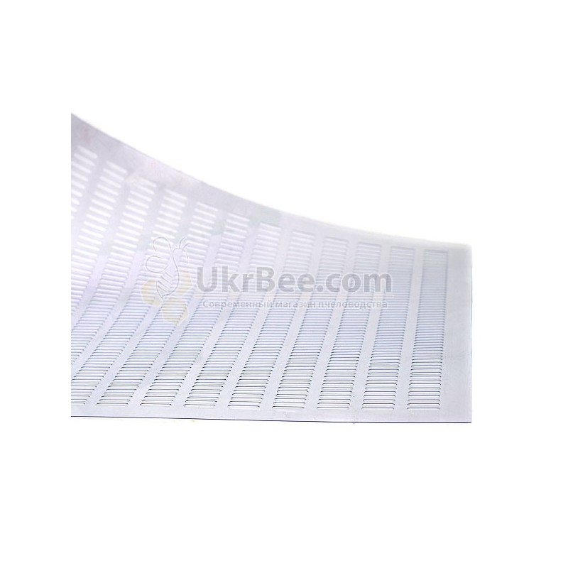 grille made of food quality material – vindurin. This thin plastic can effectively use these lattice hives all types and sizes. Play easily cut at custom sizes hives. Thanks to a thickness of 0.5 mm grating can be placed between the buildings beehives any design without violating internal dimensions of the hive.