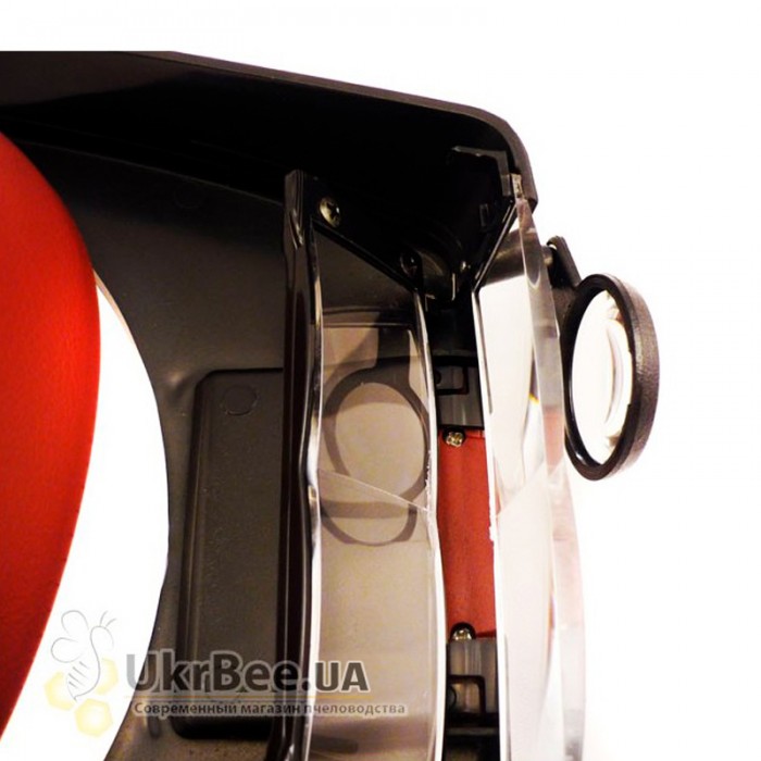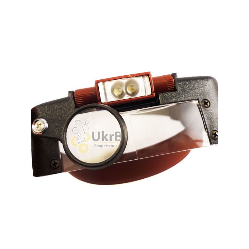 This magnifier is the best model in its class. Used in beekeeping to determine the presence of eggs or cells when migrating larvae. Strap allows you to adjust the size and securely fix the magnifying glass on the head beekeeper. The main difference between this model – the presence of bright LED flashlight that shines directly vcharunku of bee larvae and allows them to consider. Such illumination with very bright light allows the economical use batteries (batteries) for a long time work in the apiary. On the button lights installed quickly enable and disable lighting and lighting control lever angle. Lights at nobhidnosti removed.