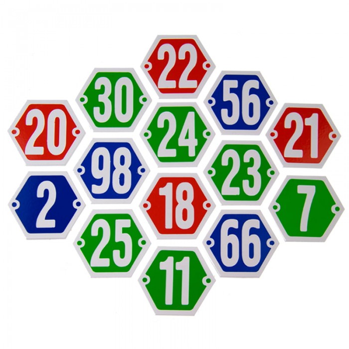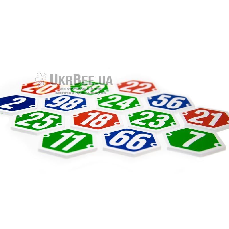 Each plate affixed one size from 1 to 100. A total of 100 set of plates. Plates of different colors (red, green, blue) are shaped cells (hexagons). Each plate also printed labels for nails. The plates can be removed and if necessary move to other hives. Dialing 100 is designed for Vilik!