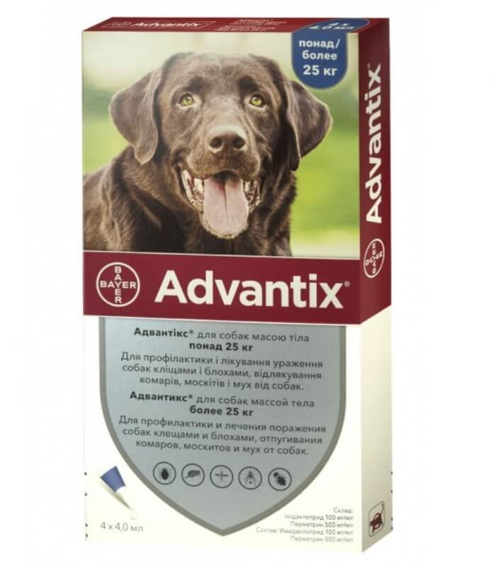 Advantix® – a drug for external use, after application to the skin is rapidly distributed over the entire body surface of the animal. The effectiveness of both active substances on the skin and fur of animals lasts for 4 weeks.