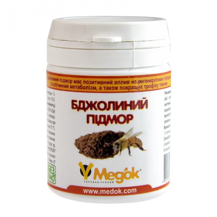 Bee pidmor – this calf dead bees that beekeepers collect the apiary in the spring audit. Dried bees with no signs of mold and disease used to make various preparations – ointments, tinctures, decoctions. The fact that the body of bees contains many useful human chemical elements, minerals and vitamins. Pidmor contains nutrients of honey, wax, pollen, royal jelly, bee accumulated during life. Fat bees in composition superior to fish oil contain a full range fatty acids.