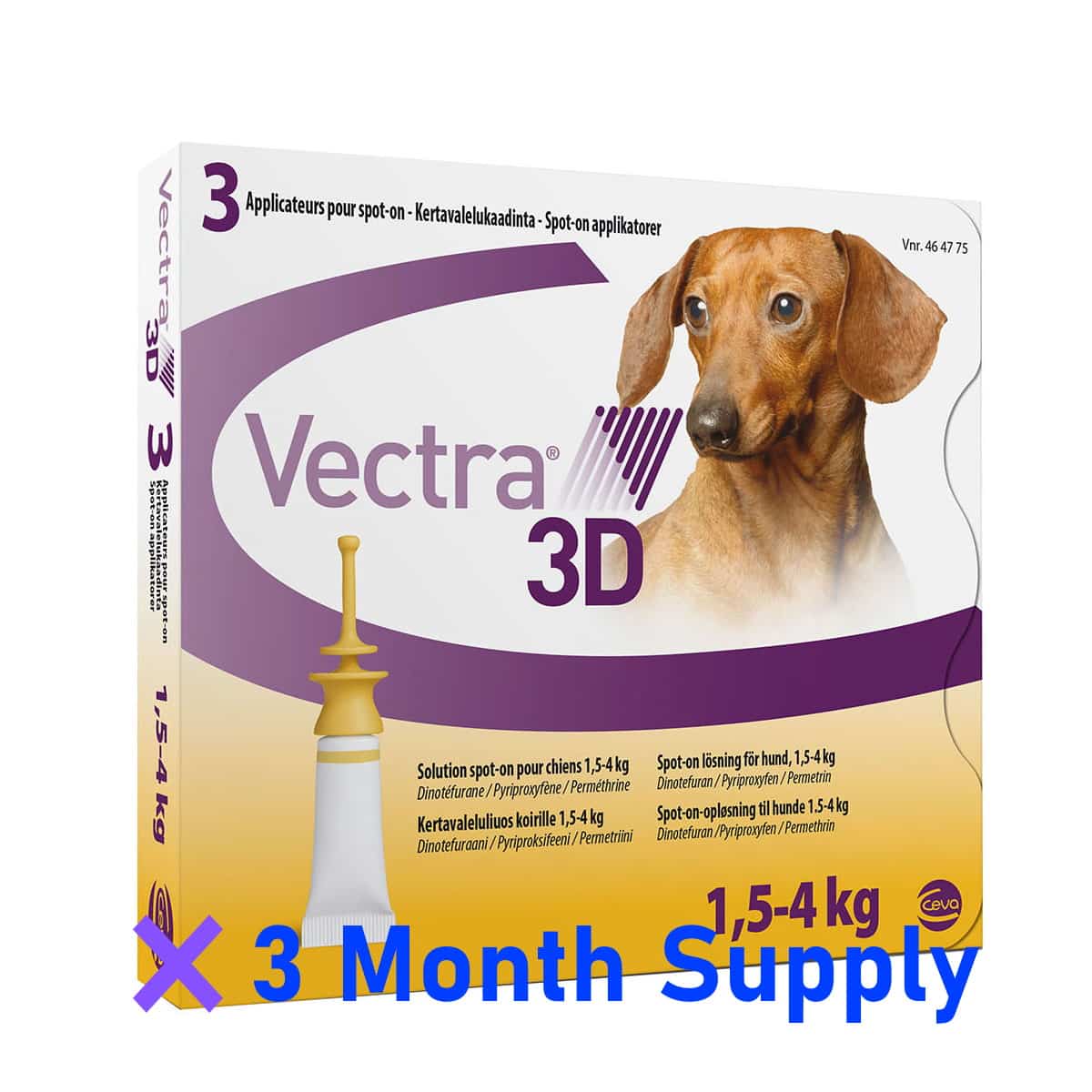Topical Solution drops Vectra 3D for dogs 1.5 – 4 kg, 3 pcs x 0.8 ml (dinotefuran, permethrin, pyriproxyfen)
